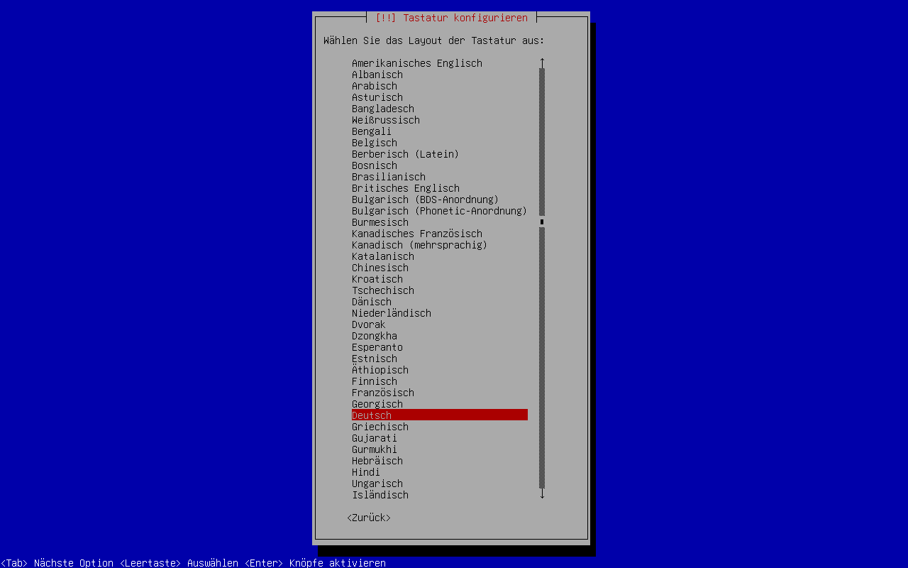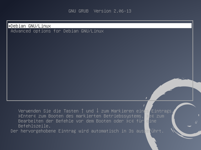 Durch Drücken von ESC kann man von der grafischen Abfrage wieder in den Textmode und zurück wechseln, was bei Fehlern weiterhin die Möglichkeit bietet, die Meldungen beim Systemstart oder Herunterfahren anzusehen.