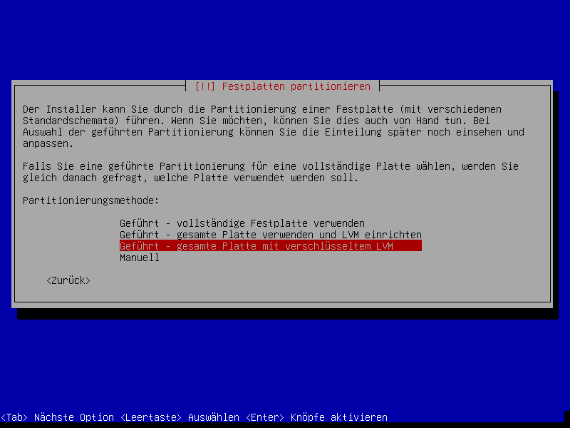 2019-10-07 Partitionierung und Verschlüsselung während der Installation