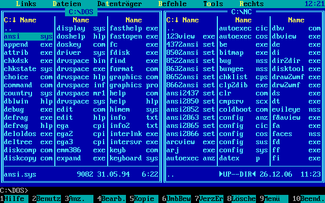 Systemadministration bei Linux bedeutet im Wesentlichen das Editieren von Konfigurationsdateien. Dazu verwende ich den GNU Midnight Commander (mc), der mit dem Paket mc installiert wird. Es ist ein zweispaltiger Dateimanager im Stil des Norton Commanders mit integriertem Texteditor (mcedit), dessen Bedienung eher traditionell ist. Die typischen Editoren im Umfeld von Unix sind zwar mächtiger, haben aber Bedienkonzepte, an die ich nicht gewöhnt bin. Für mich reicht der mcedit, außerdem erinnert mich das Programm an den alten MS-DOS Editor und damit an eine Zeit, in der man von seinem Betriebsystem noch die Bedeutung jeder einzelnen Datei gekannt hat.