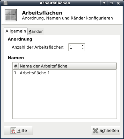 Nach einer Neuinstallation gehe ich systematisch alle Einstellungen durch und passe sie ggf. nach meinen Wünschen an. Ich fange oben links an und arbeite mich zeilenweise voran, beginne also bei den Arbeitsflächen, von denen ich nur eine brauche.