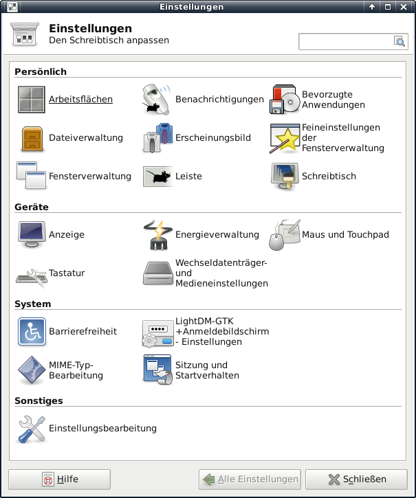 Alle Einstellungen, die ROOT-Rechte erfordern, sind fertig. Hier geht es um die Konfiguration ausschließlich auf Benutzerebene. Das beinhaltet hauptsächlich das Aussehen der Benutzeroberfläche und die Grundkonfiguration von Anwendungsprogrammen. Um in diesem Abschnitt aufgenommen zu werden, muss der Systemeingriff ohne Administratorrechte durchführbar sein.