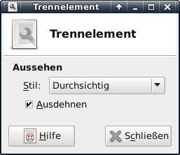 Das Trennelement soll sich ausdehnen und durchsichtig sein und in der Benachrichtigungsfläche verzichte ich auf die Rahmen. Die Anzeige für Datum und Uhrzeit habe ich angepasst. Ich lasse das Jahr nicht anzeigen, weil ich davon ausgehe, dass es eine überflüssige Information ist.