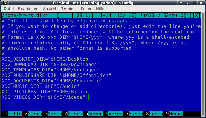 festgelegt. Dort können sie auch geändert werden. Ich bevorzuge die Verzeichnisnamen "Desktop" und "Audio" gegenüber "Schreibtisch" und "Musik".