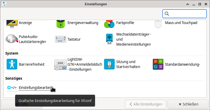 Es gibt eine Menge Dienstprogramme, die optional von XFCE genuzt werden können, aber nicht automatisch mitinstalliert werden. In den Einstellungen des Whisker-Menüs sieht man etwa menulibre und mugshot.